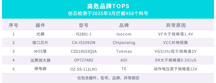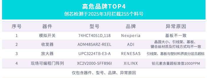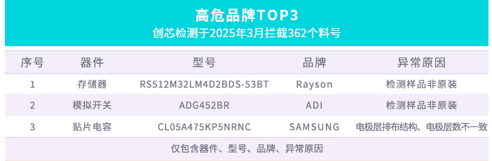 創芯檢測 | 3月元器件異常物料檢測攔截報告
